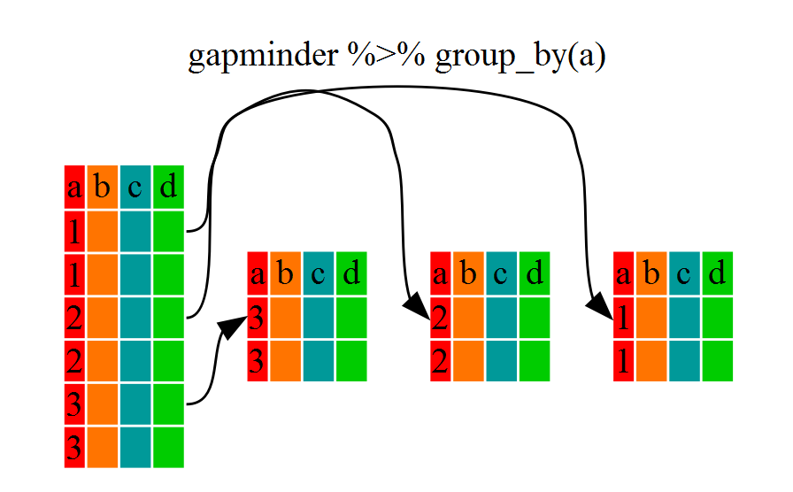 by step. First we summon the gapminder dataframe and pass it on, using the pipe